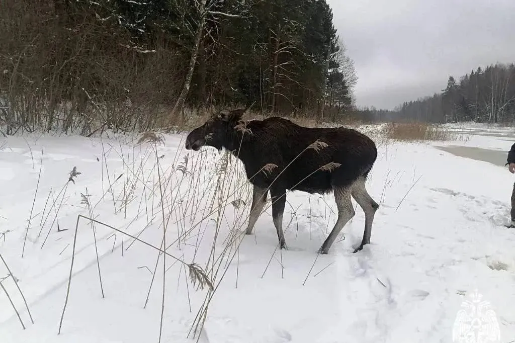 В Тверской области на озере Плоское лось и лосёнок провалились под лёд. Специалисты МЧС прибыли на место, чтобы помочь животным выбраться. Об этом сообщает телеграм-канал пресс-службы МЧС России.