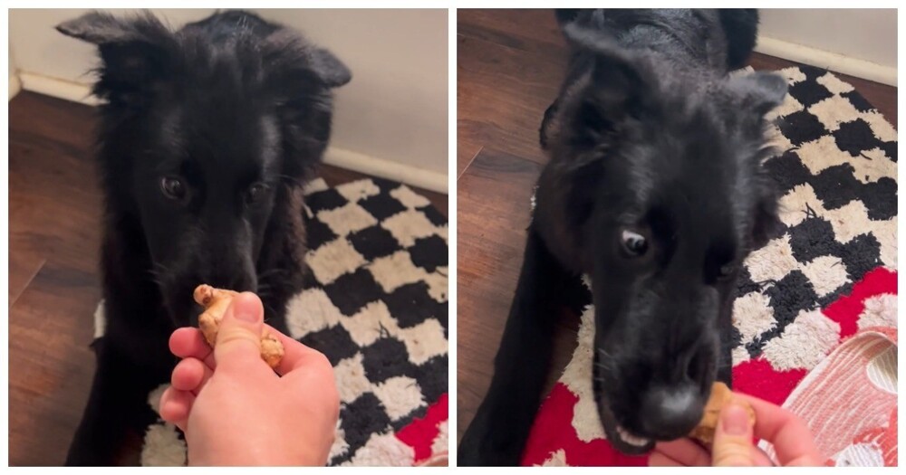 Мужчина дал своему псу попробовать корень имбиря и запечатлел его реакцию. Питомец был не в большом восторге от вкуса, но ничего не мог с собой поделать.