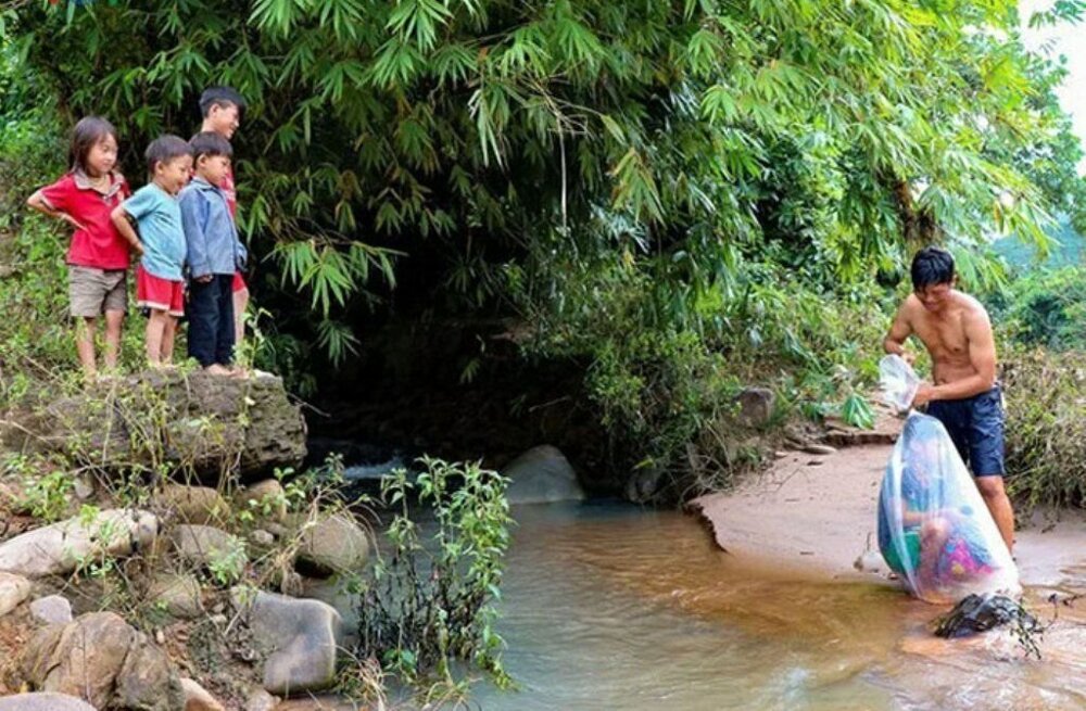 Жители небольшой вьетнамской деревушки Хуой Ха, делают все для того, чтобы их дети посещали в школу. В том числе — перевозят их в пакетах через реки.