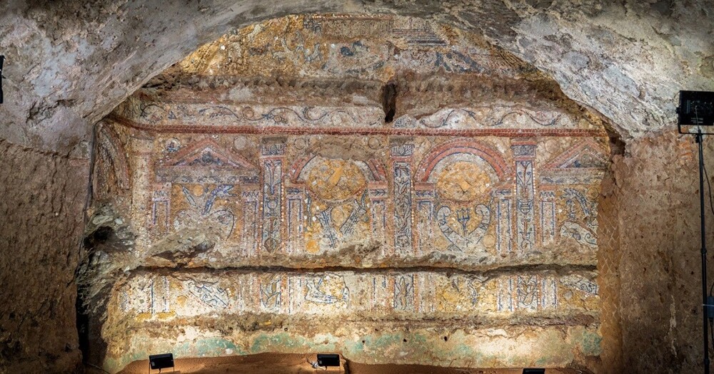 Археологи раскопали банкетный зал, декорированный яркой настенной мозаикой. Богато украшенное помещение было частью аристократического дома, построенного около 2300 лет назад на склоне Палатинского холма в Риме.