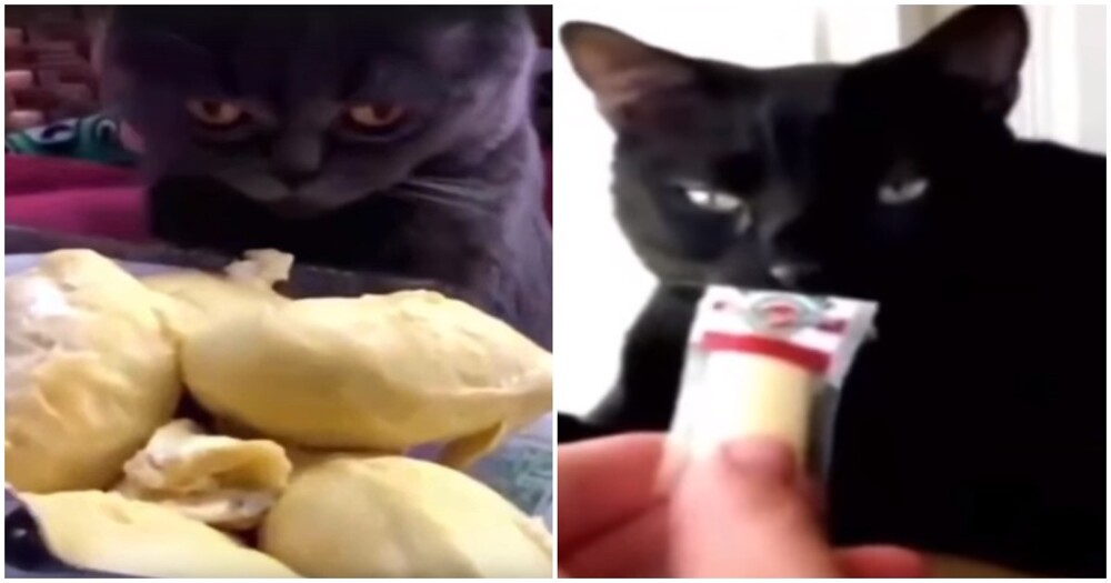 Дуриан - это экзотический фрукт, который отличается очень специфическим запахом. Кто-то говорит о запахе испорченной рыбы или тухлых яиц, другие рассказывают о странном луково-чесночном аромате. Котикам тоже не по вкусу запах фрукта. Посмотрите, как они реагируют на дуриан.