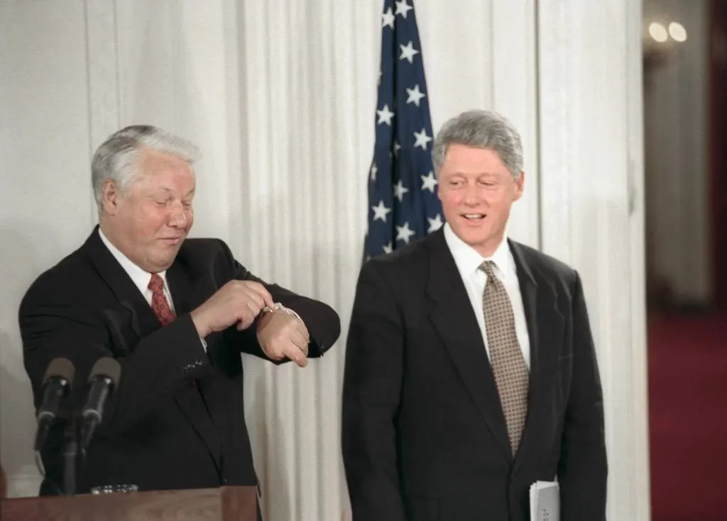 Бывший президент РФ Борис Ельцин на встрече с американским коллегой Биллом Клинтоном в 1994 году говорил, что Россия должна первой присоединиться к НАТО в случае расширения блока. Об этом говорится в рассекреченной Архивом национальной безопасности США стенограмме.