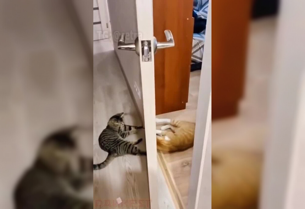 Если у вас дома живет два кота, то скучно вам не будет! Ведь они так же, как и дети, любят играть и соревноваться. Вот, пожалуйста, перетягивание каната по-кошачьи. Кто же победит в этой легендарной битве?