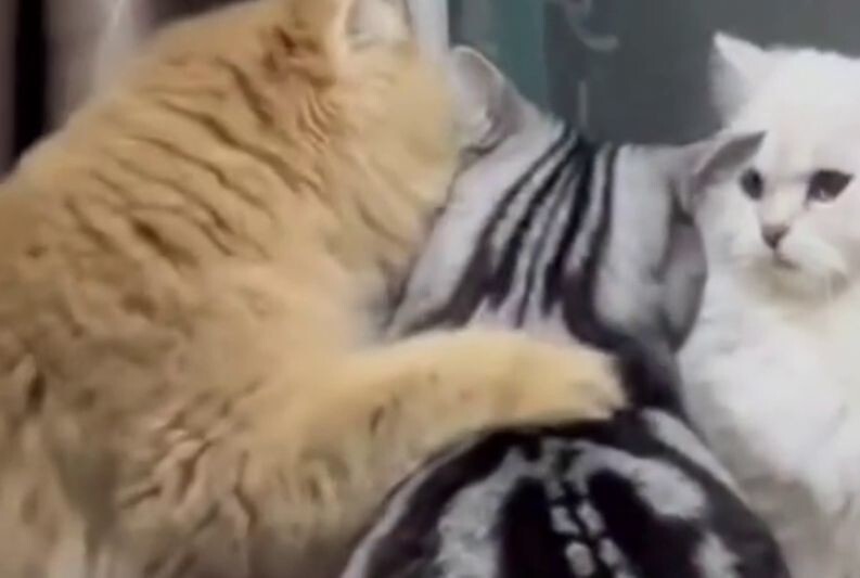 Двое котиков, очевидно, точили зуб друг на друга, и третий, рыжий прохиндей, подлил масла в огонь, шепнув что-то на ухо одному из них. После этого драка была неизбежна.