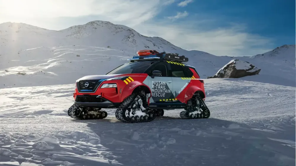Компания Nissan показала новый концепт на базе серийного кроссовера X-Trail актуального поколения. На этот раз прототип называется Mountain Rescue: вседорожник переоборудовали для экстренной помощи в горных районах, для чего вместо колёс снабдили гусеницами.