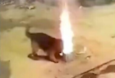 Камера наблюдения, установленная в небольшом населённом пункте в Китае, запечатлела необычный инцидент. В канун китайского Нового Года пёс схватил пиротехническое изделие и обстрелял своих хозяев.