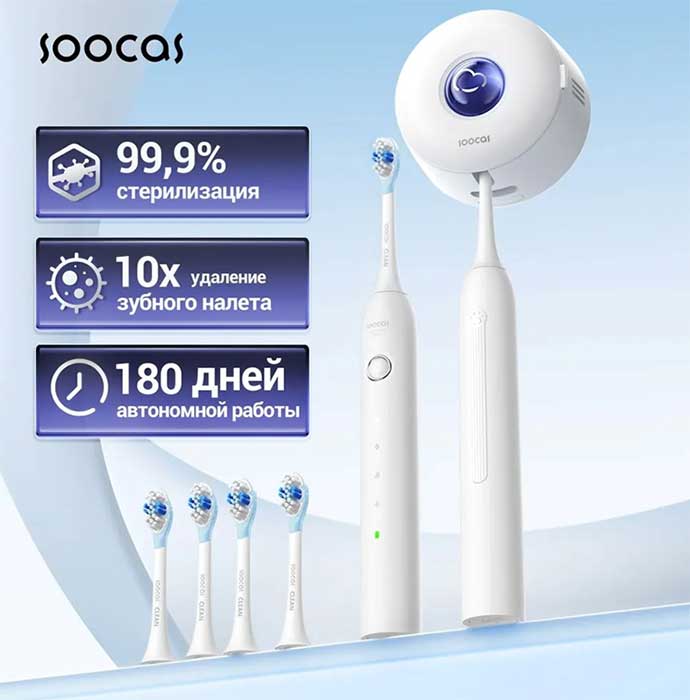Soocas D3 Pro способна чистить зубы с четырьмя насадками и в четырёх режимах